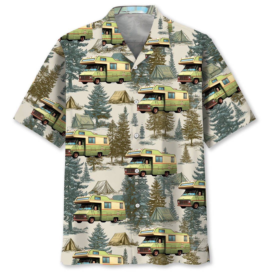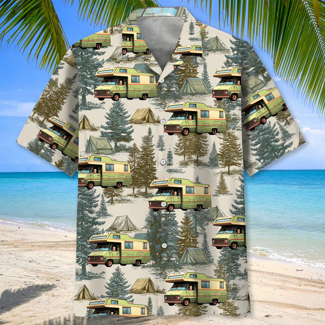 Vintage RV Motorhome Camping Hawaiian Shirt